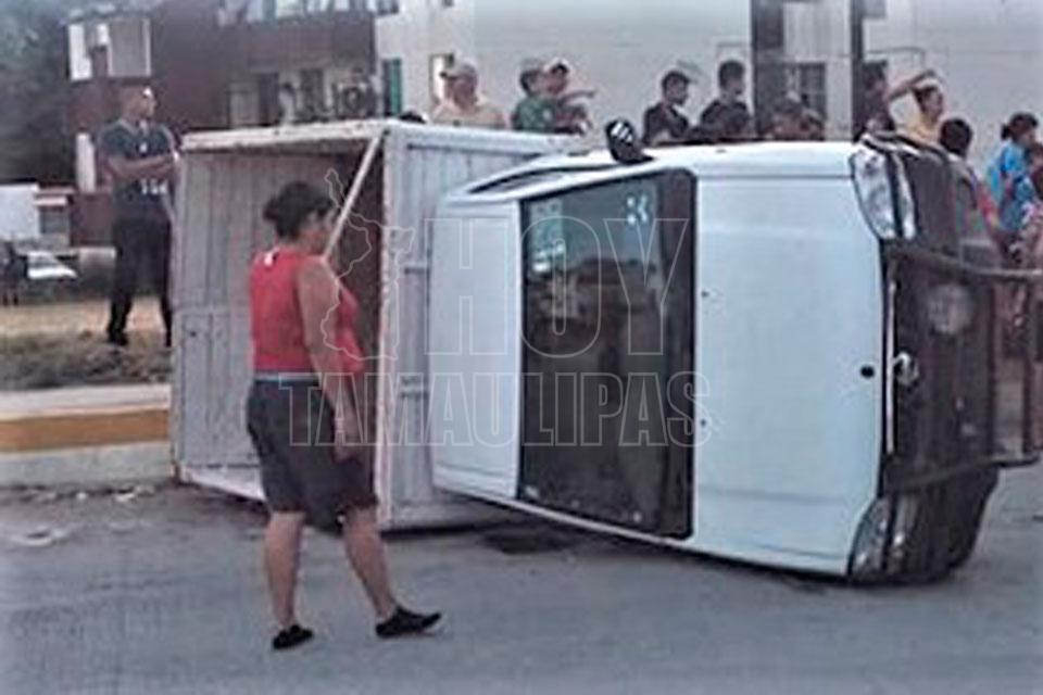 Choque con volcadura en Tampico deja excesivos daños materiales