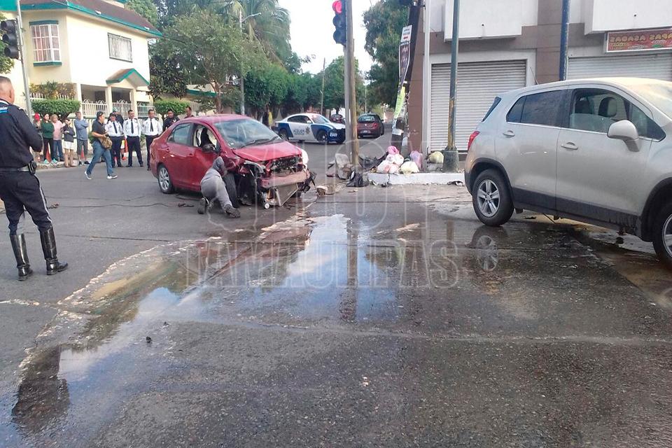 Derriba taxista a motociclistas en Altamira