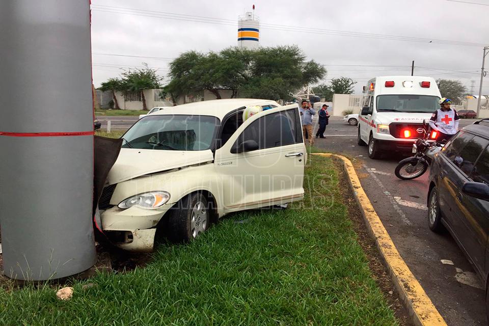 Mujer impacta su auto contra anuncio en Ciudad Victoria; niña sale lesionada
