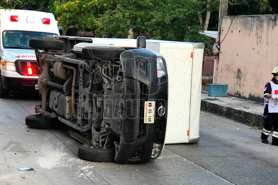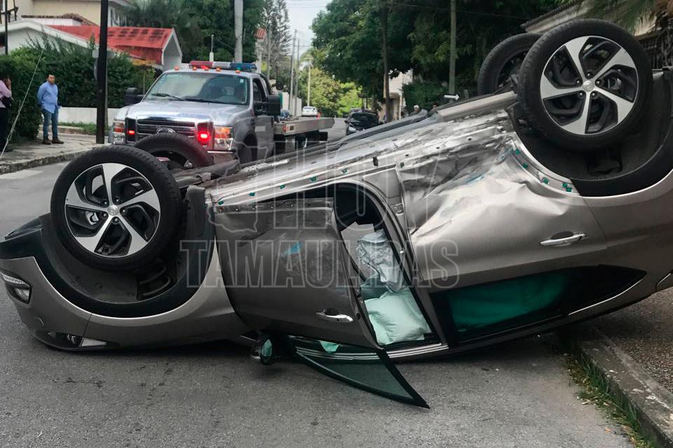 Vuelca camioneta al ser chocada por “vocho” en Tampico