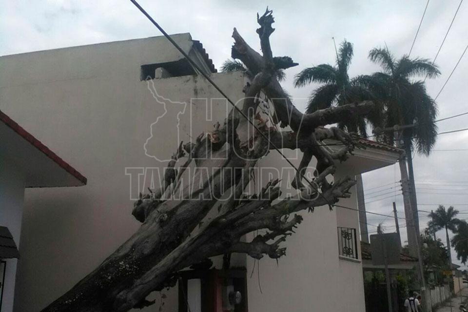 Cae viejo y enorme árbol sobre residencia en Tampico