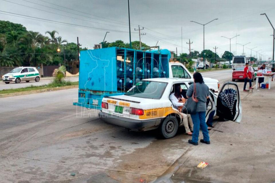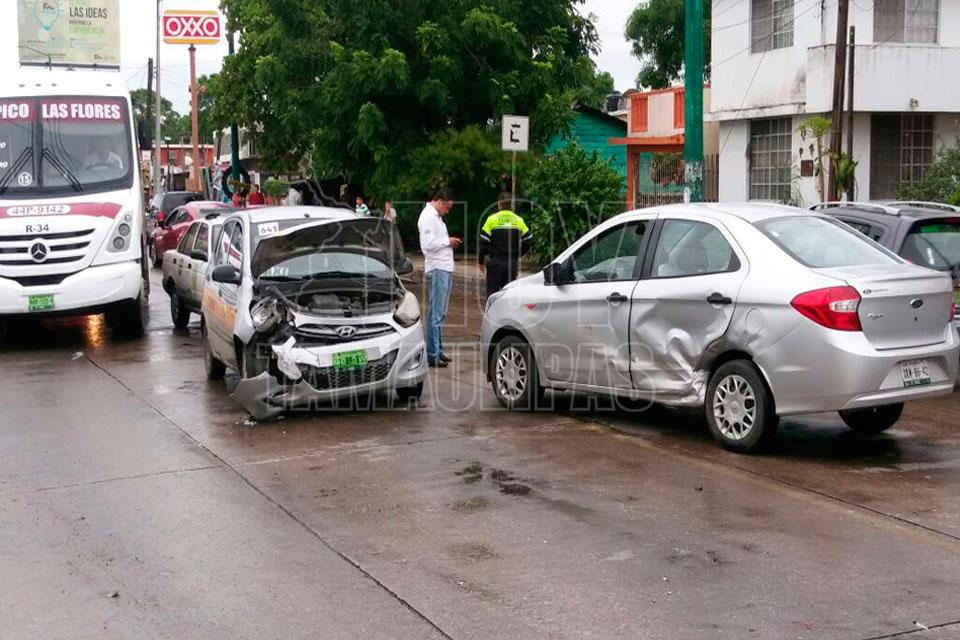 Da vuelta en “U” y es impactada por taxi en Tampico