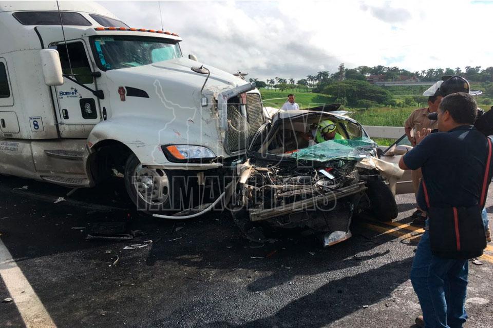Tráiler embiste carro en Tampico y deja dos lesionados de gravedad
