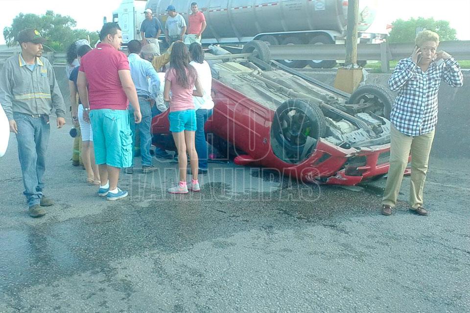 Vuelca camioneta y deja 3 lesionados en el Puente Roto de Altamira