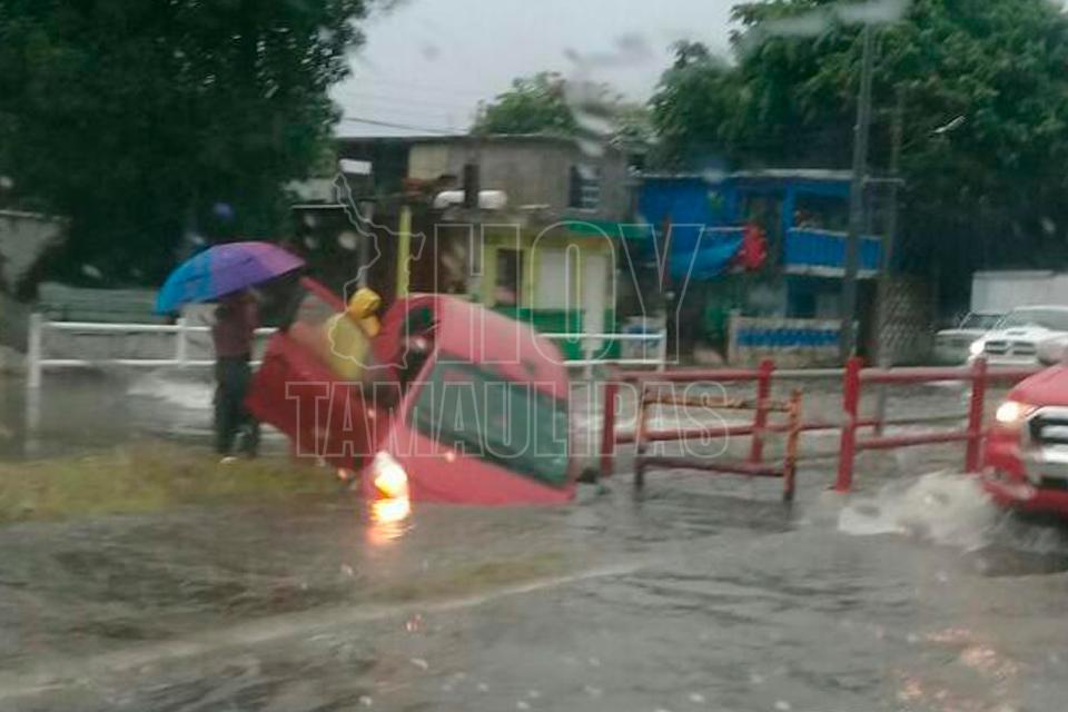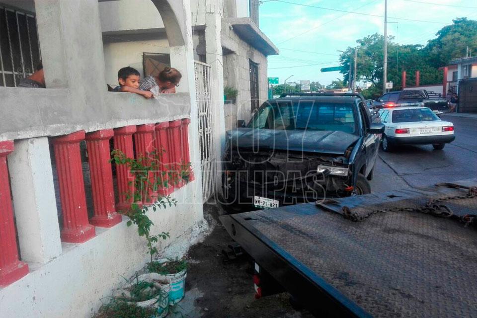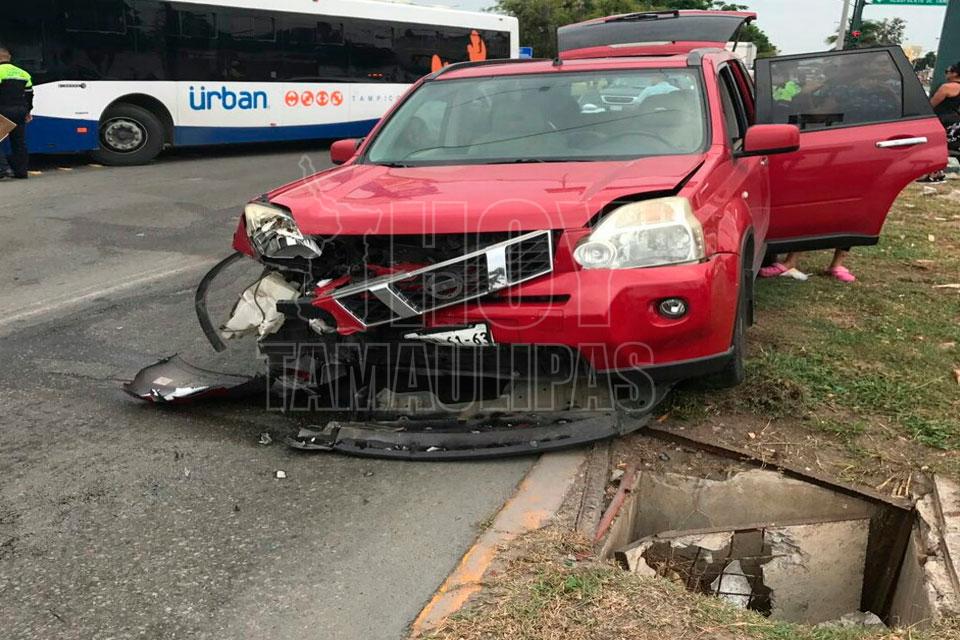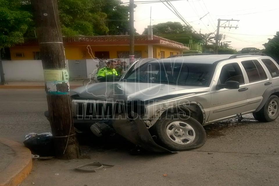 Se pasa alto, choca con carro y remata con poste en Tampico