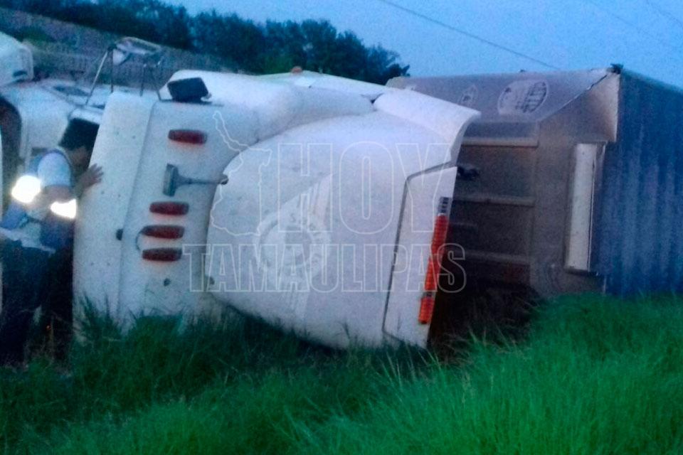 Abandonan tráiler al volcarlo en la Tampico-Mante