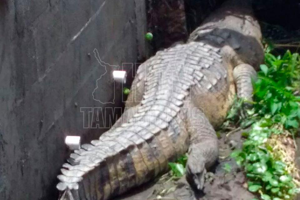 Capturan enorme cocodrilo en canal a cielo abierto en Tampico
