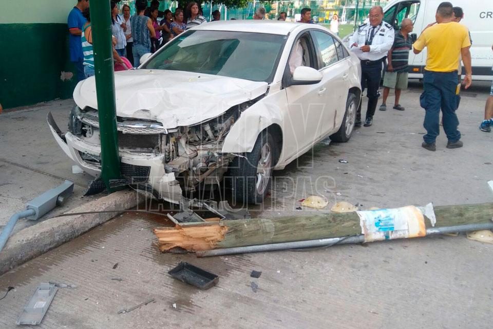 Chocan y tumban poste de Telmex en Madero, dos lesionados