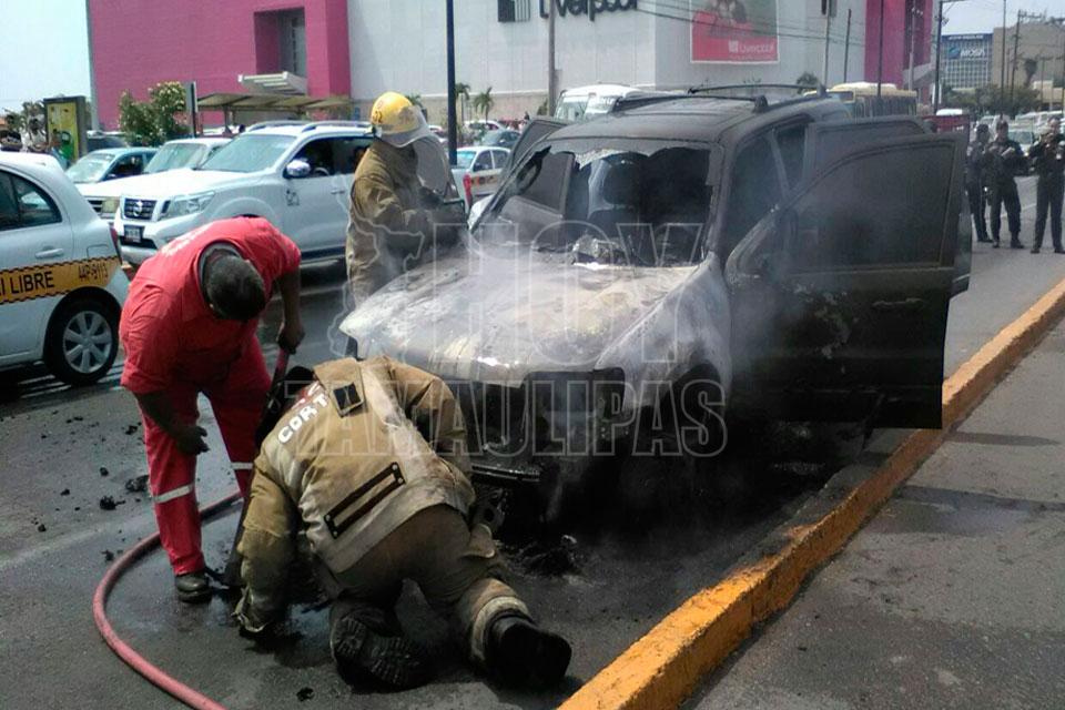 Arde camioneta en vialidad de Tampico