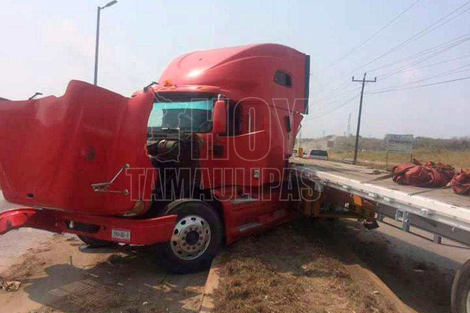 Trailero se estampa en muro de contención en Puerto de Altamira