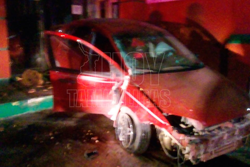 Ebrio choca su coche contra fachada de negocio en Tampico