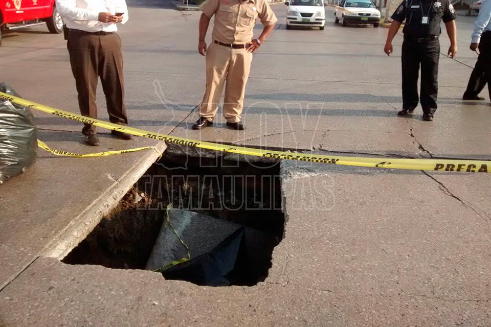 Se forma gran socavón en Avenida de Tampico
