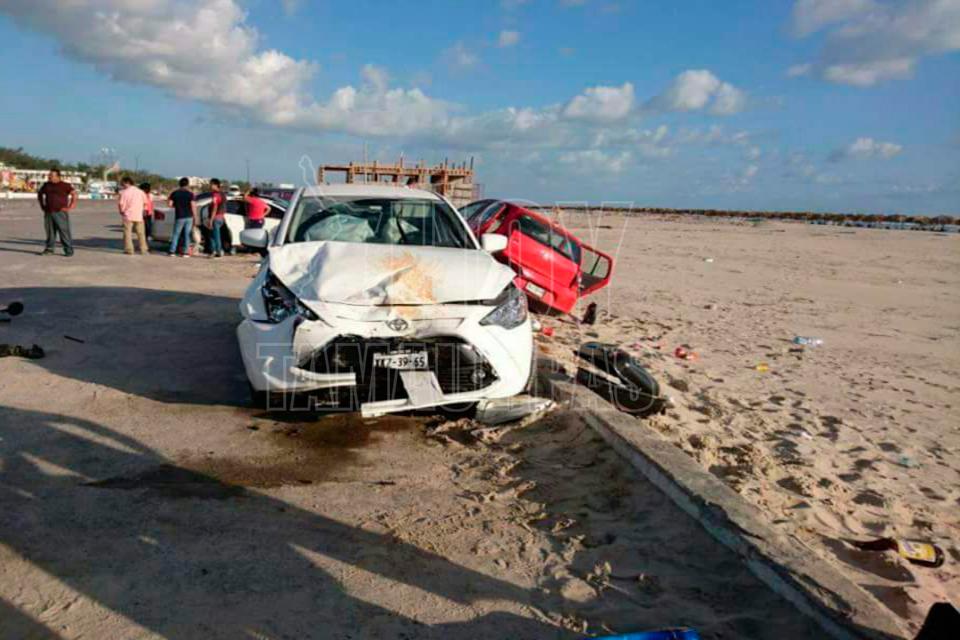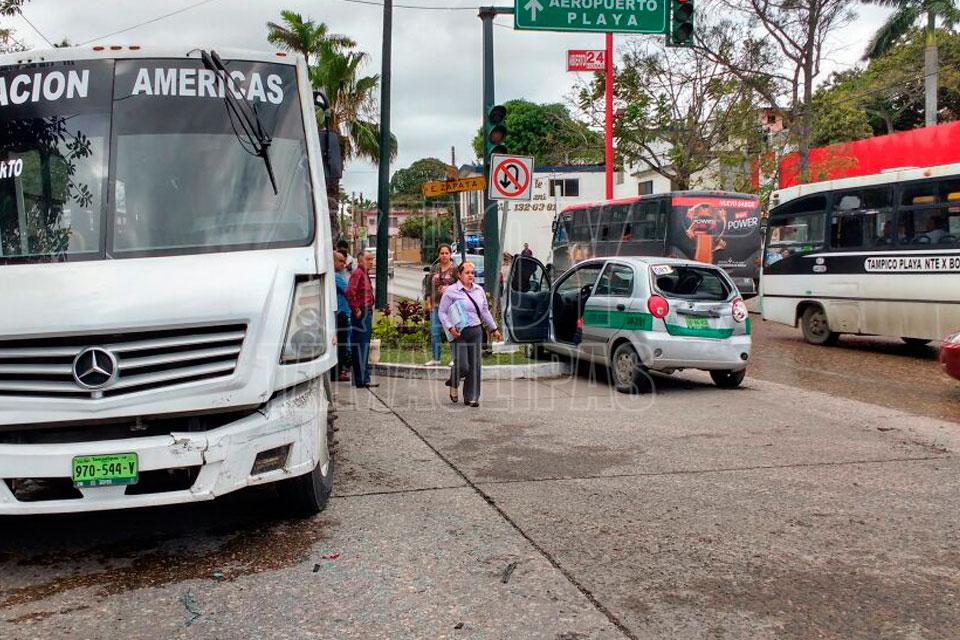 Madre e hija lesionadas al chocar taxi con autobús en Tampico