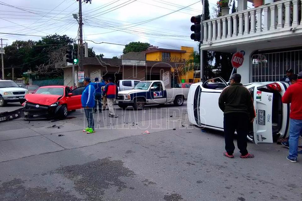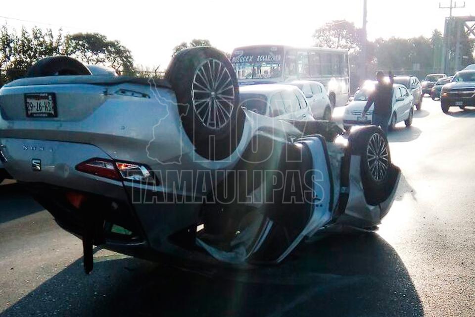 Conductor choca y vuelca frente a la UAT Tampico