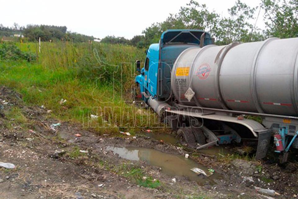 Tráiler cargado con 41 mil litros de aceite queda varado en la Tampico-Mante