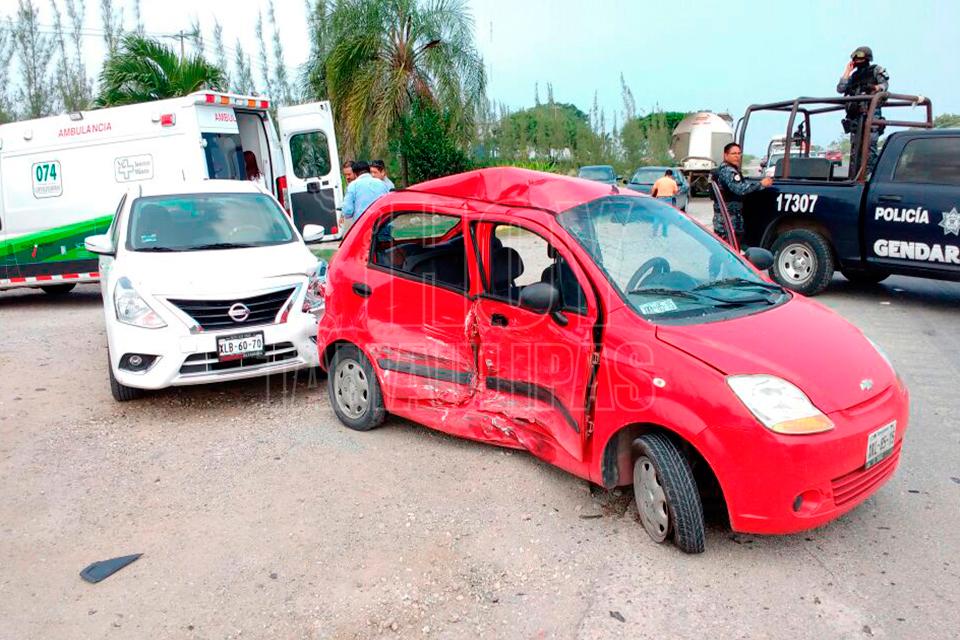 Joven y menor de edad salen ilesos de brutal choque en Altamira