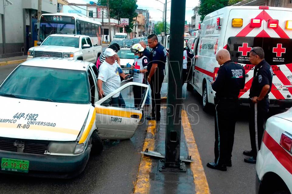Choca taxista contra camellón en Avenida Hidalgo de Tampico; 2 heridos