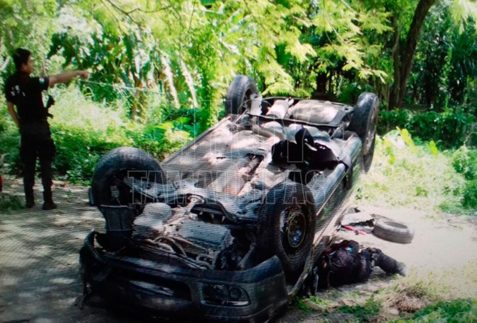 Jóvenes protagonizan espectacular volcadura en Tampico a bordo de “Jetta”