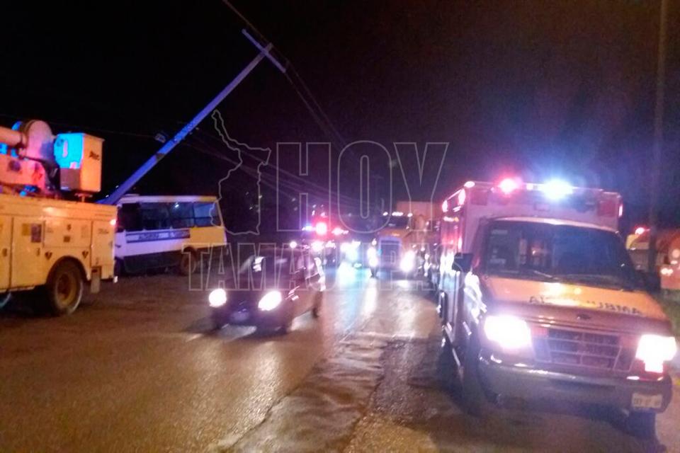Seis heridos en colisión de un autobús con un poste de CFE en Altamira