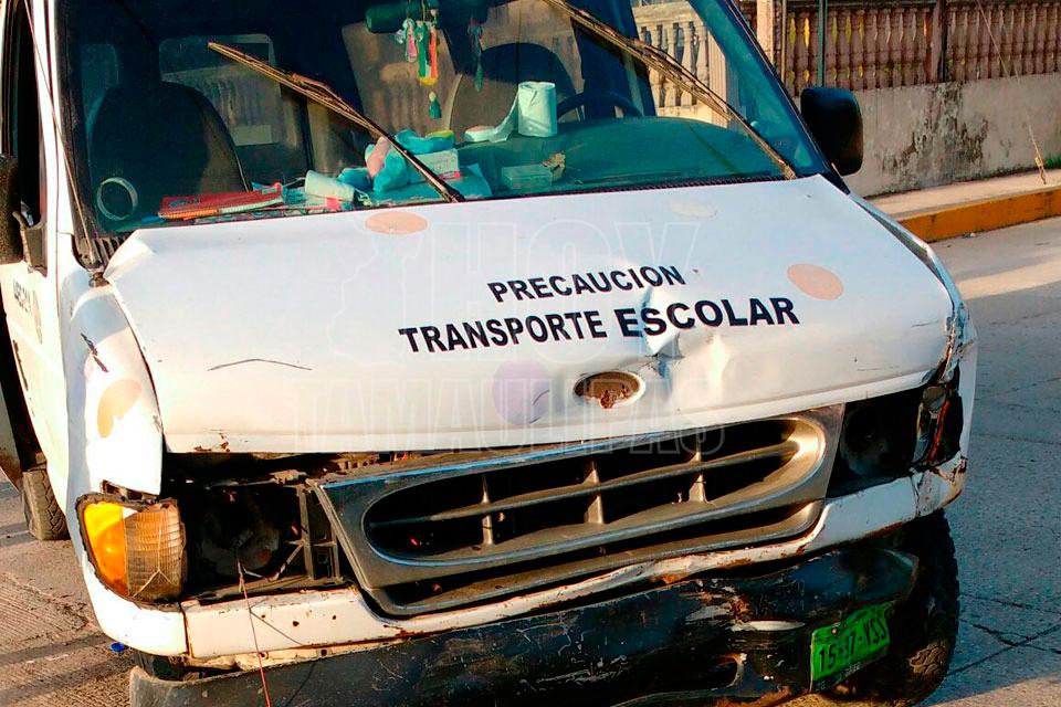 Choca camioneta de transporte escolar en el norte de Tampico
