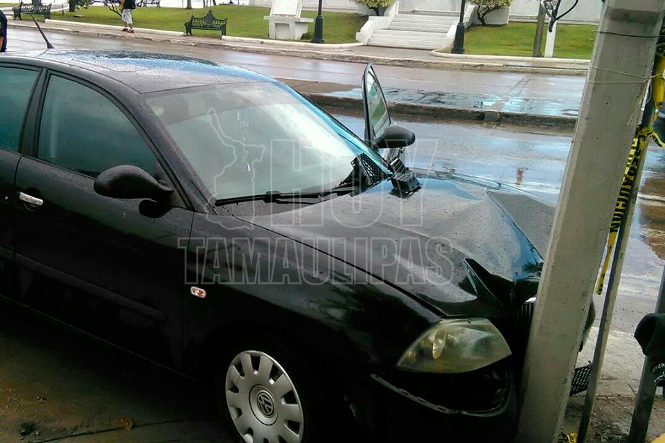 Conductor choca contra poste en el centro de Tampico
