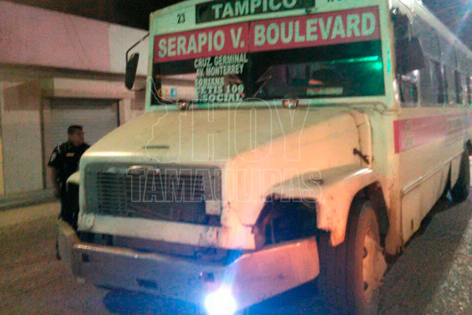 Autobús se queda sin frenos y choca un carro en Tampico