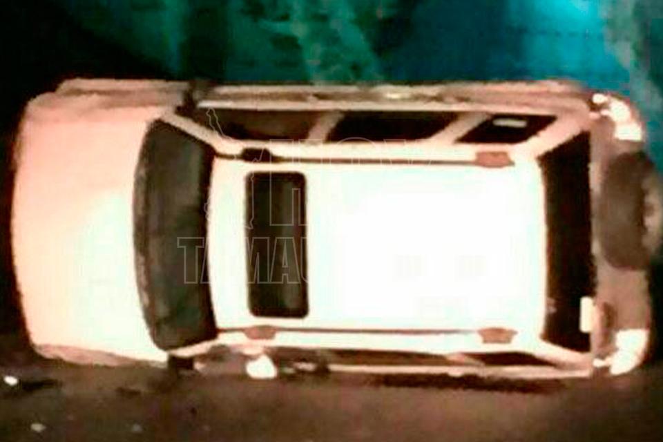 Abandonan camioneta tras volcarla frente al Aeropuerto de Tampico