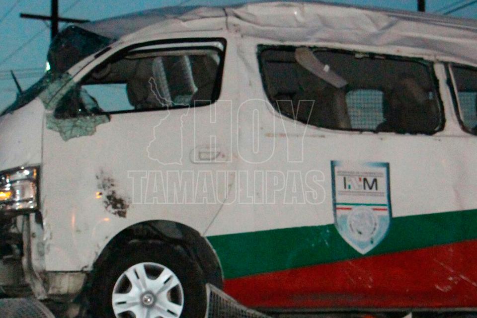Vuelca camioneta de Migración en Tamaulipas al transportar 18 ilegales