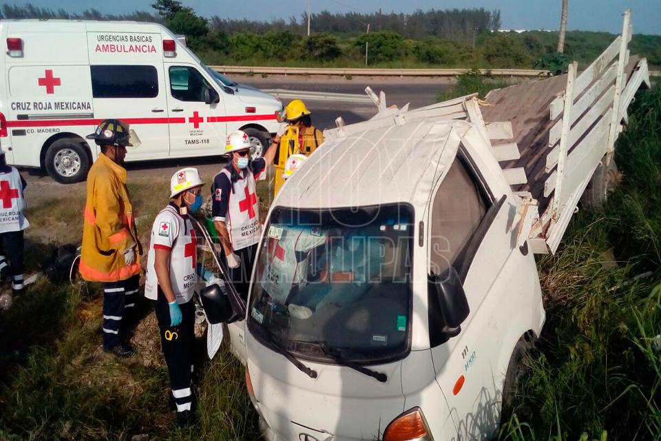 En Madero padre e hijo sufren volcadura en "curva de la muerte"