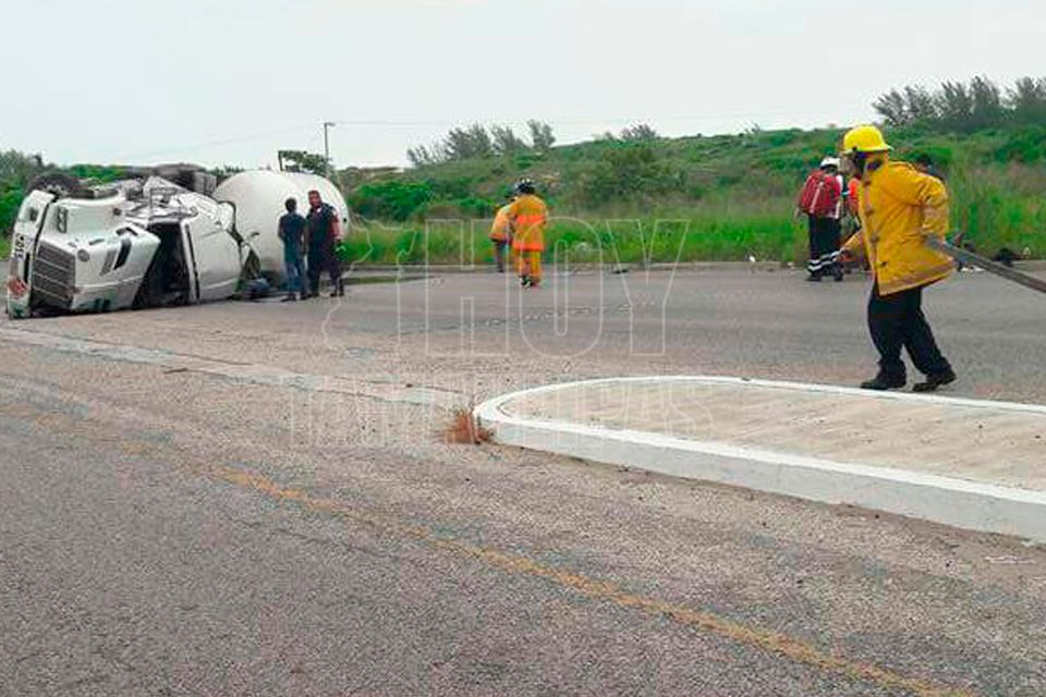 Vuelca pipa con Gas LP tras chocar en Ciudad Madero