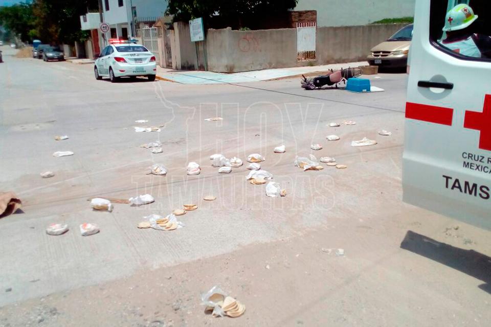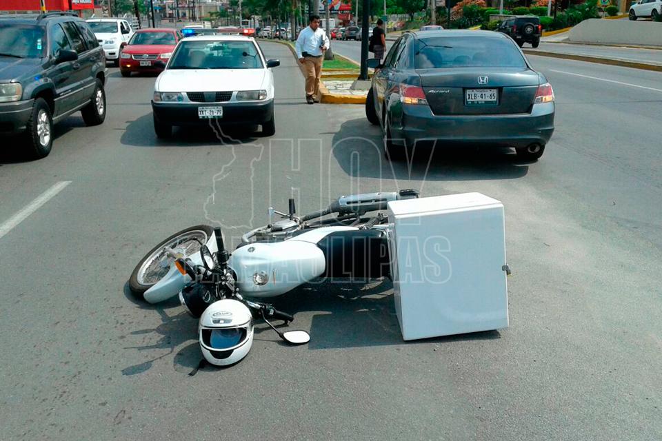Motociclista se lesiona al derrapar en avenida de Tampico