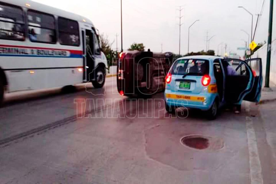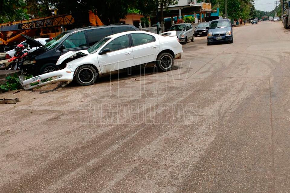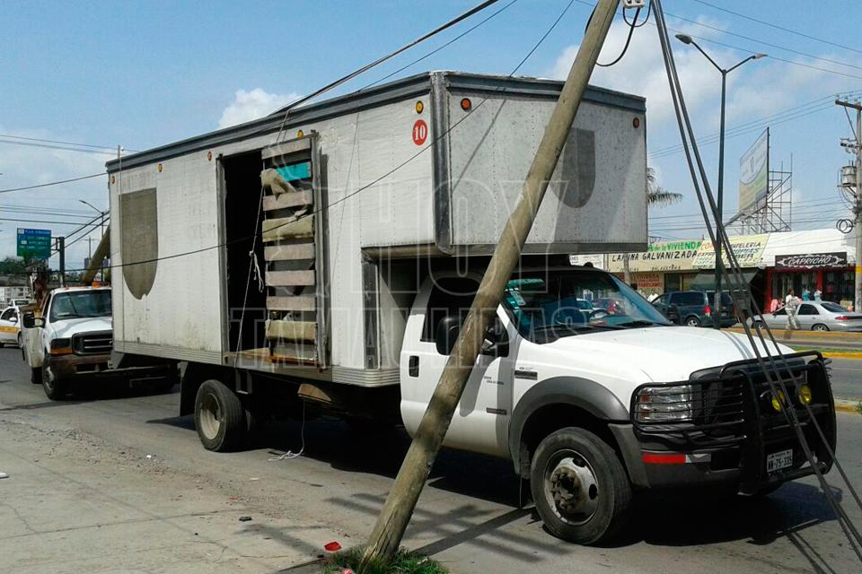 Camioneta de mudanzas tumba poste de Telmex en Tampico