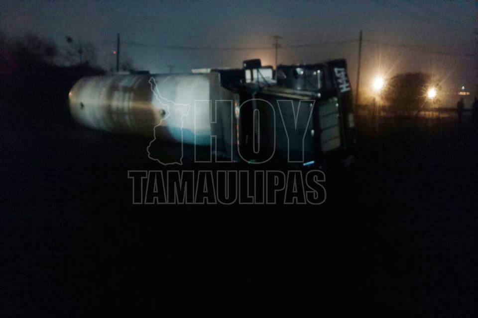 Conductor vuelca con pipa cargada de sustancia peligrosa en Puerto de Altamira