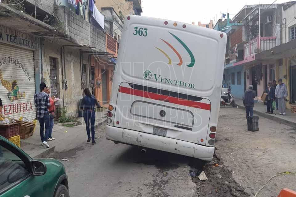 Cae autobús en una zanja que abrió Comapa en Tampico