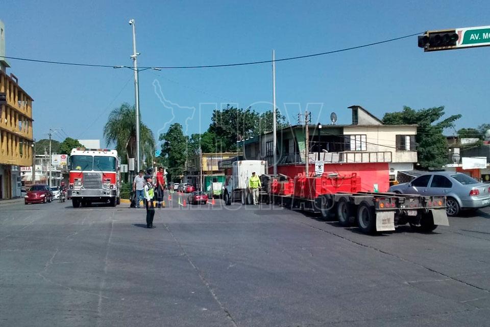 Se queda atravesado un tráiler en las vías del tren en Madero