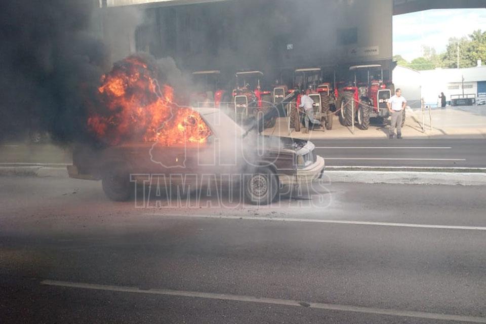 Fuego consume vagoneta en la Avenida Hidalgo de Tampico