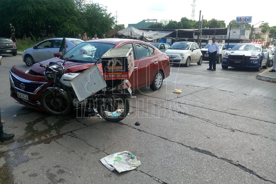 Mujer embiste a motociclista y queda herido en el centro de Tampico