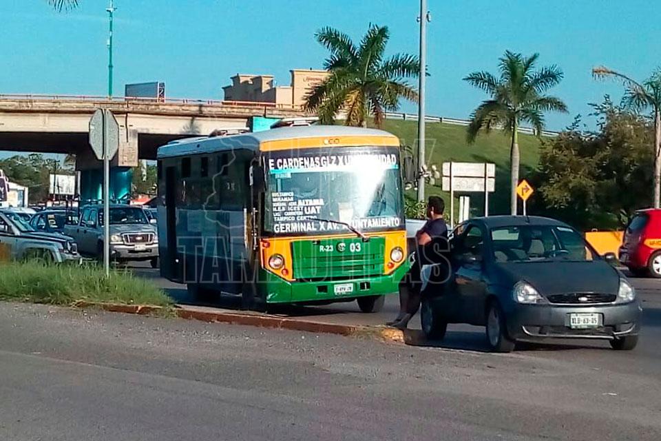 Autobús urbano choca por alcance frente aeropuerto de Tampico