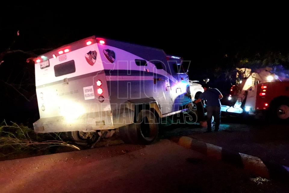 Chocan y vuelcan custodios de valores en la Tampico-Valles