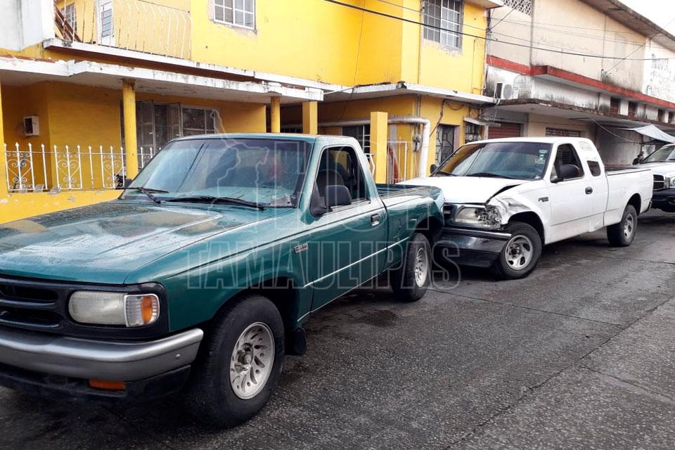 Dormita al volante y choca dos camionetas en Tampico