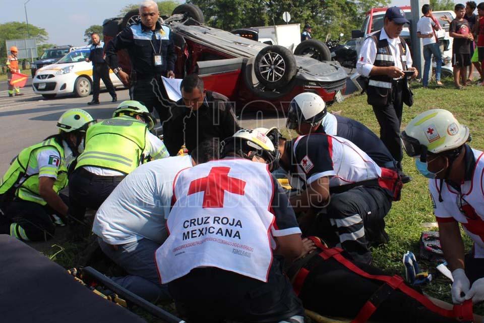 Choque con volcadura deja dos heridos en la Tampico-Valles