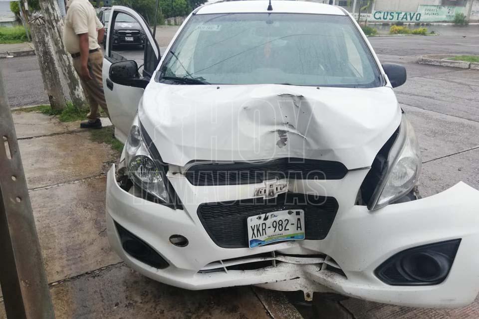 Automovilista se impacta contra poste en Tampico