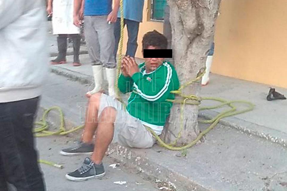 Amarran de un árbol a asaltante de taxistas en Ciudad Madero