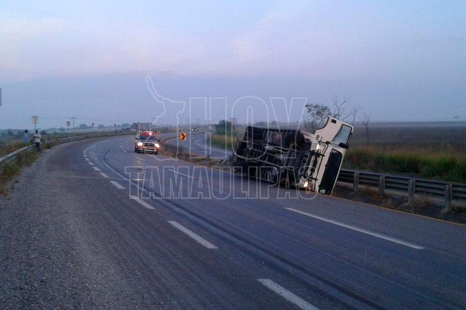 Vuelca camión cargado con medicamento en Altamira