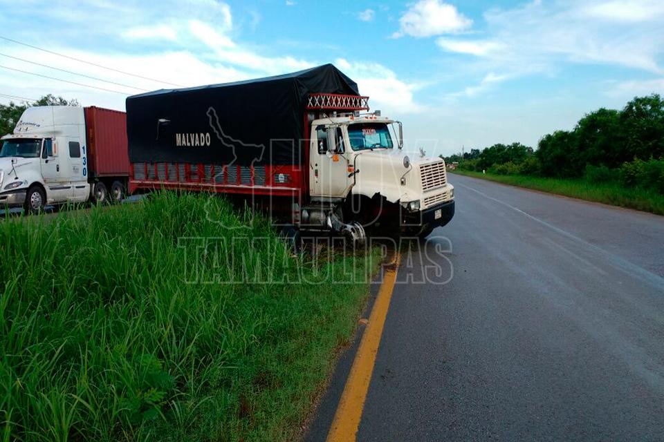 Tráiler casi vuelca en carretera Tampico-Mante