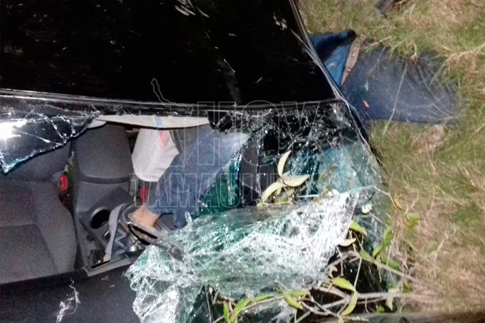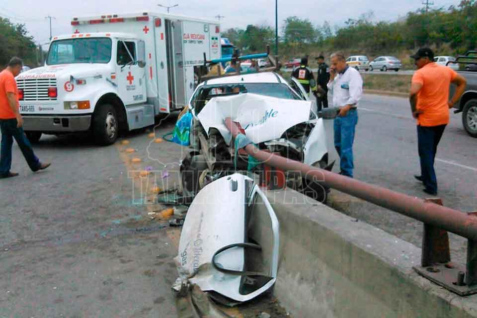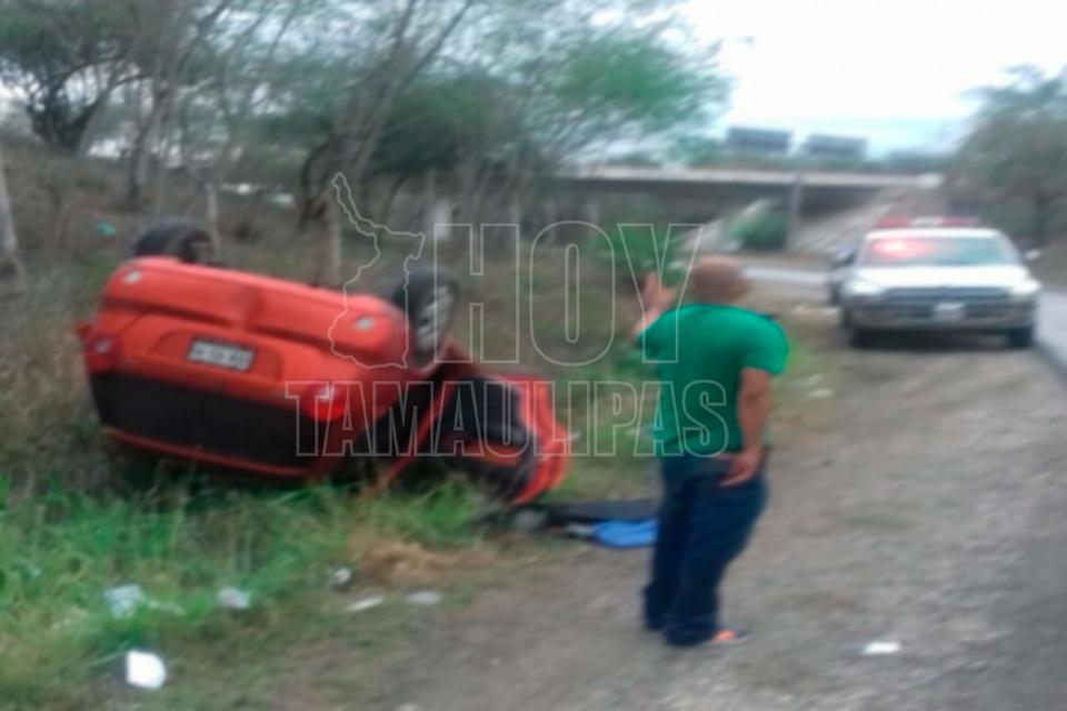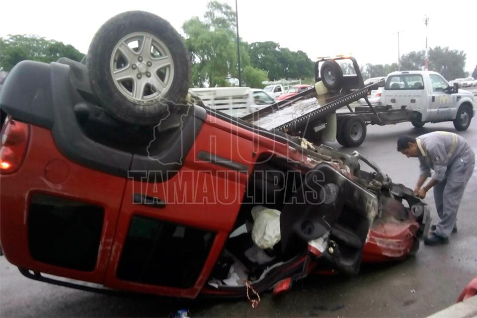 Conductor derrapa y vuelca frente el Aeropuerto de Tampico