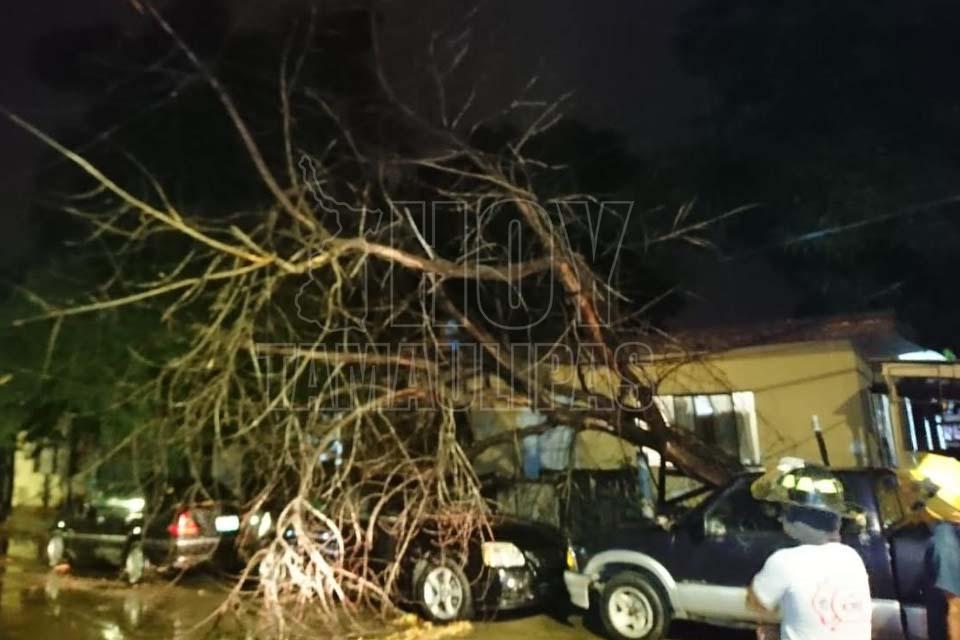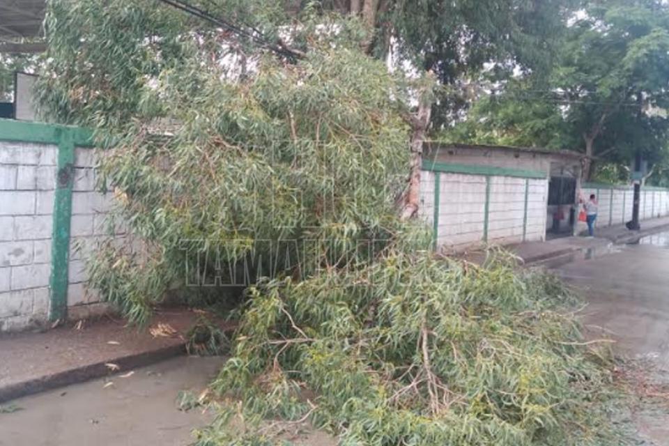 Caen dos árboles a causa de fuerte lluvia nocturna en Madero