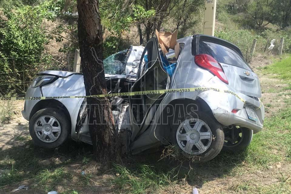 Muere prensado al estrellar su carro contra árbol en González