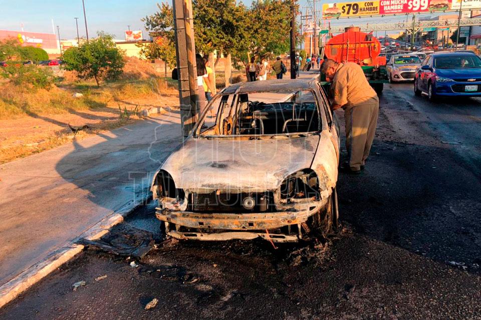 Carro queda reducido a chatarra al incendiarse en Tampico