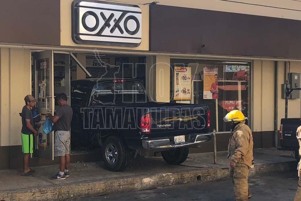Camioneta termina al interior de Oxxo dejando dos lesionados en el centro de Tampico